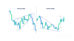 The rising and falling wedges chart pattern indicates market breakouts. They consist of a price range that becomes too narrow and results in a final breakout that marks a trend reversal.