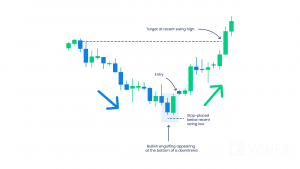 The engulfing chart pattern is used to identify the entry and exit points. During an uptrend, it is advised to place entry orders right above the high currency pair price, and during a downtrend, it is best to pace exit orders right below the low currency pair price. These patterns also signal trend reversals that again help traders to enter or exit the market accordingly.