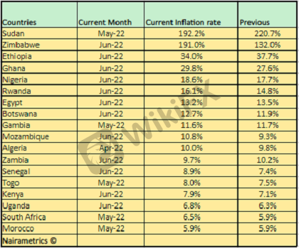 Nairametrics compiles a list of African countries and how they are faring in terms of inflation rate, based on their recent inflation numbers.