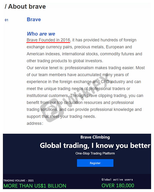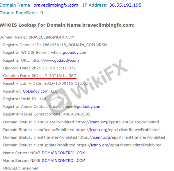 At the first sight, you may fell the broker is reliable and reputable with these magnificent figures, data and awards and it must be welcomed by traders and individuals with good reputation. However, its domain name(https://braveclimbingfx.com/) check result shows the firm was newly created at the end of year 2021. So how it can win awards and has a company history before its establishment? Thus, it's a red flag here.