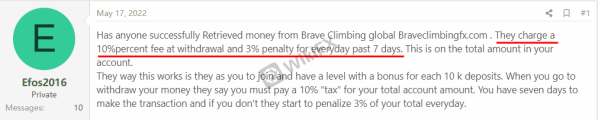Another client with a nickname Efos2016 said the Brave charges a 10% fee at withdrawal and 3% penalty for everyday past 7 days.