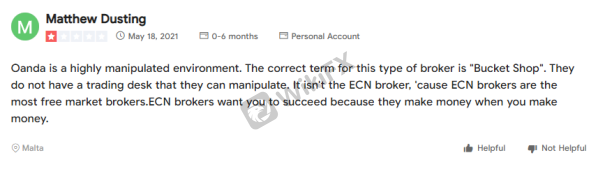 According to OANDA clients, the brokerage manipulates their orders before passing them to the market. Investors also accuse the company of not providing flexible charting time frames and advanced technical indicators. Other complaints include widened spreads, no negative balance protection, guaranteed stop-loss, etc.