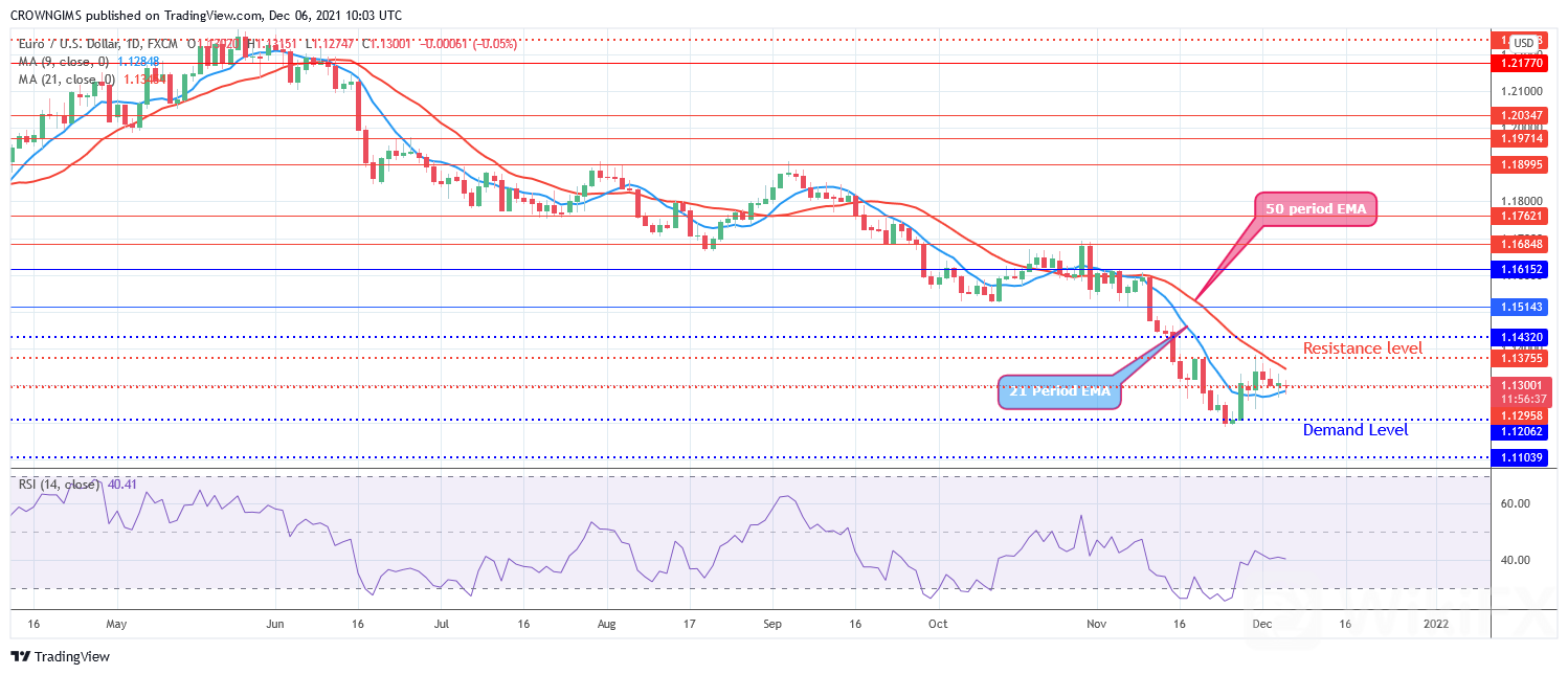 On the medium-term outlook, EURUSD is bearish. The price broke out at the $1.1514 support level with the aid of bears pressure, it was pushed down to the support level of $1.1206 level on November 25. The pair observed a pullback and retested the previous high but unable to break up the $1.1375 level. The Bears are still in control of EURUSD market at the moment.