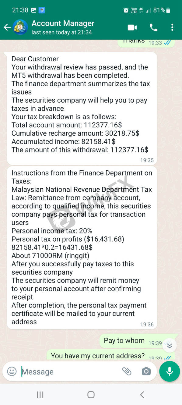Then the trap came. He thought it was safe and deposited more money to make more profit about 30k USD. It was so profitable that he made $82,158 profits in just two weeks. However, the bad thing happened when he tried to withdraw – he must pay a tax of 20 percent of his profits, or $16,431 in taxes.