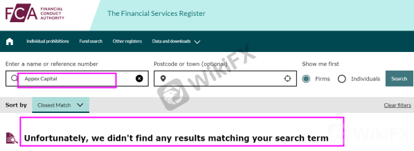 In addition, as per the United Kingdom law, all firms and individuals offering, promoting, or selling financial services or products in the UK have to be authorized or registered by the UK financial regulator – FCA. However, we did not find any matching results to Appex Capital on FCAs register. That means Appex Capital is not an approved broker to offer financial services in the UK.