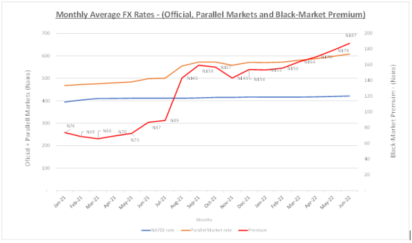 Specifically, the NAFEX rate closed at N425/$1 on Friday, 1st of July 2022 compared to the first-quarter average of N416/$1 (I.e. a 2% depreciation at the official window compared to the first quartet).