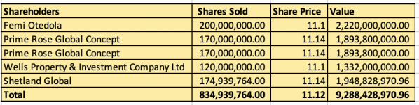 It is also unclear who is buying the shares from him (Otedola), however, transactions like this are often acquired by institutional investors or similar billionaires like Mr. Otedola with deep pockets.