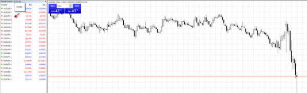 The first page you see when you open Meta Trader 4, can be customized as your default page. You might want to see forex quotes along with a chart as an example. On the left side is a quote sheet. It shows you a list of products that you can trade through the MT4 platform.