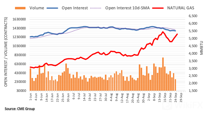 According to advanced prints from CME Group for natural gas futures markets, open interest shrank by around 7.4K contracts after two daily builds in a row. In the same line, volume dropped by around 132.1K contracts, extending the choppiness seen as of late.