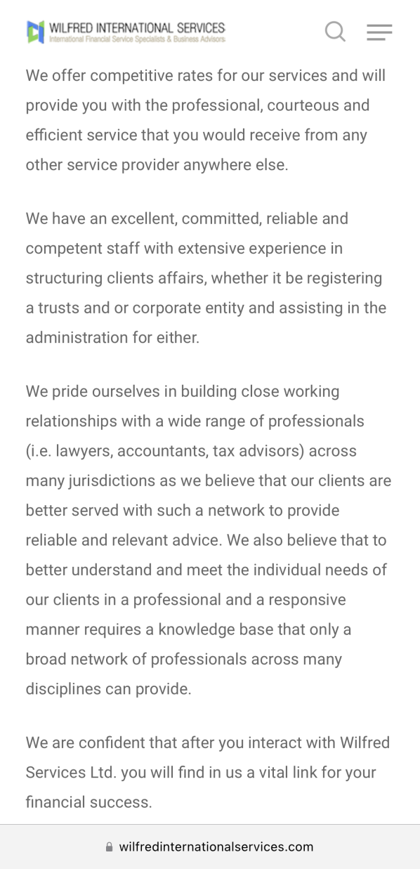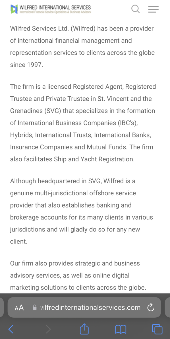 It seems like Wilfred International Services is a one-stop solution company that not only helps with business registration but also the setup of the whole entity.