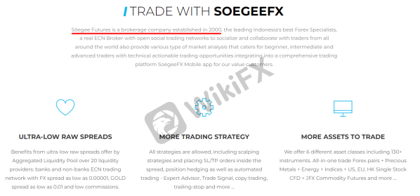 SoegeeFX says it is a a brokerage company established in 2000, the leading Indonesia's best forex specialists. However, its domain name (https://soegeefutures.com/) check result shows that it was first created in 2011. So how could it start its business in 2000? It is a red flag here.
