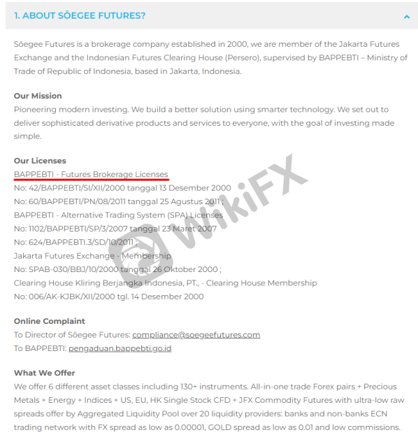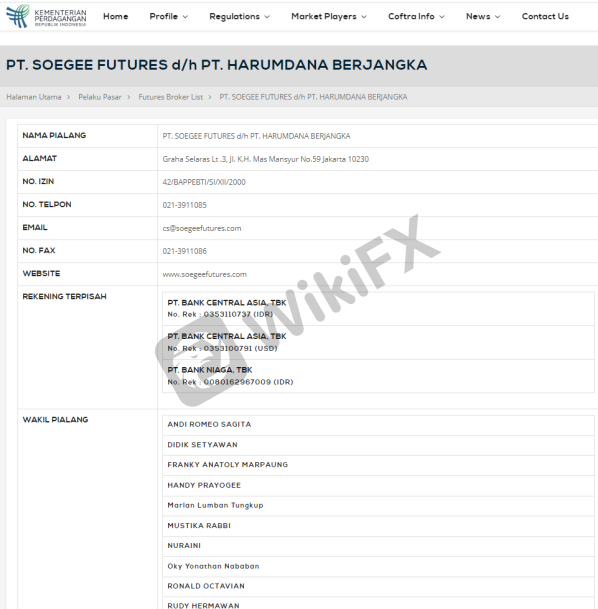 As a brokerage entity, SoegeeFX claims to be a member of the Jakarta Futures Exchange and the Indonesian Futures Clearing House (Persero), supervised by BAPPEBTI – Ministry of Trade of Republic of Indonesia.