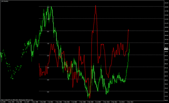 The formula is as follows: USDX = 50.14348112 × EURUSD-0.576 × USDJPY0.136 × GBPUSD-0.119 × USDCAD0.091 × USDSEK0.042 × USDCHF0.036