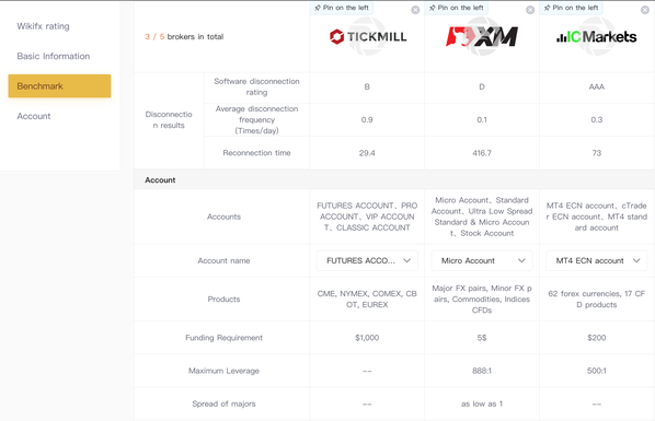 This ‘broker comparison’ tool allows you to compare several forex brokers simultaneously.